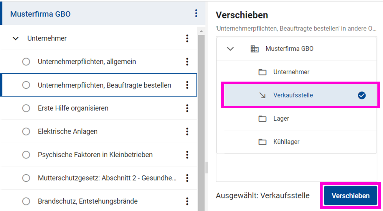 - Klicken Sie anschließend auf den Button "Verschieben".