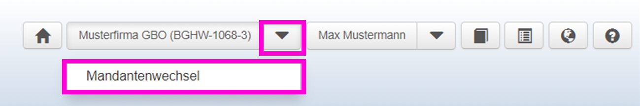 - Klicken Sie auf den Drop-Down Pfeil neben dem Firmennamen.