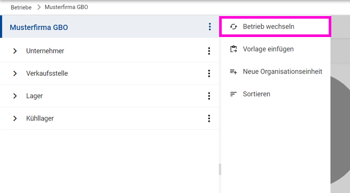 - Klicken Sie auf das "Drei-Punkte-Menü" neben ihrem Firmennamen (oberster Eintrag im Strukturbaum).